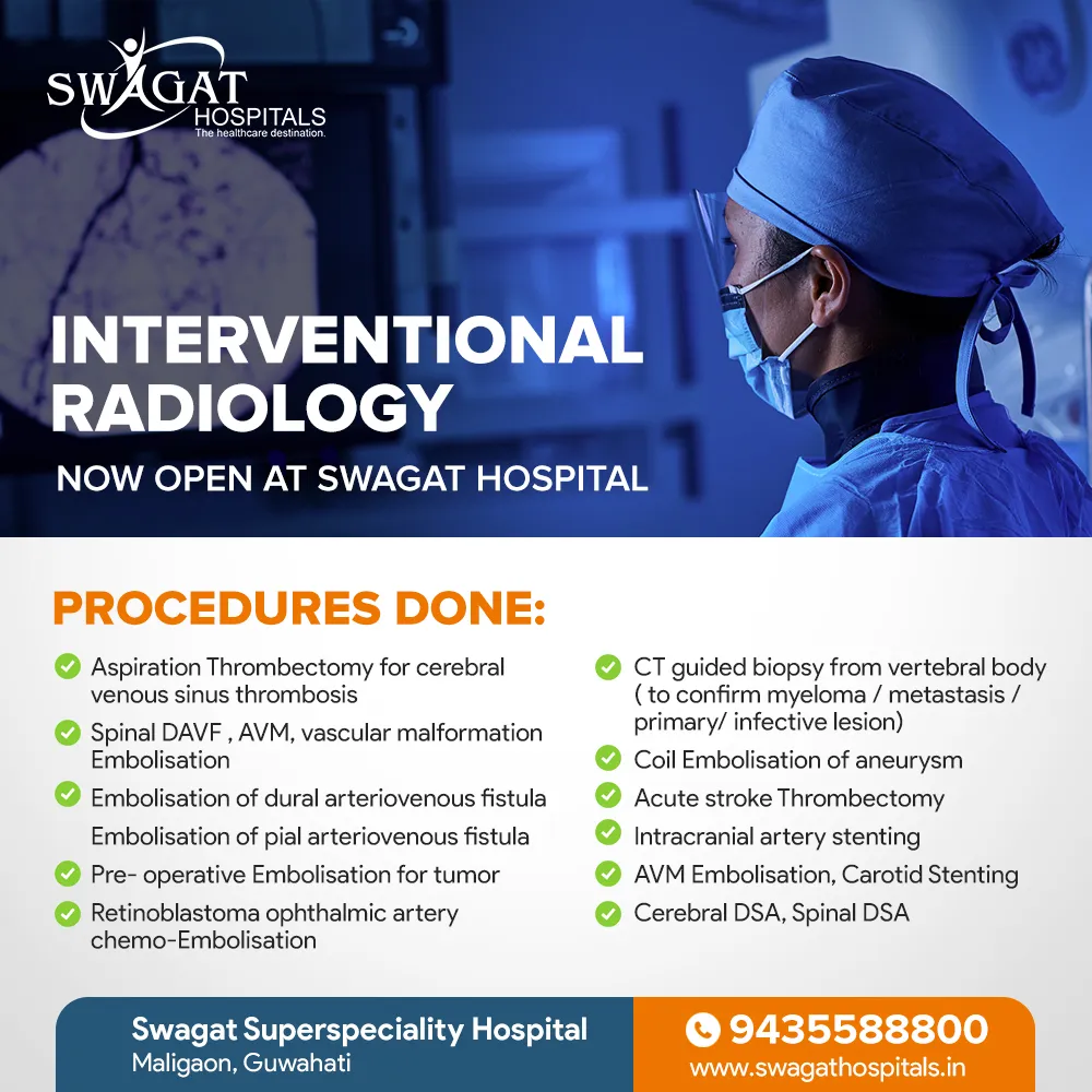 At Swagat Superspeciality Hospital, we have opened North-East India most advanced CathLab, Interventional Radiology & Cardiac Emergency Setup to offer a full range of diagnostic services and treatment for the patients.